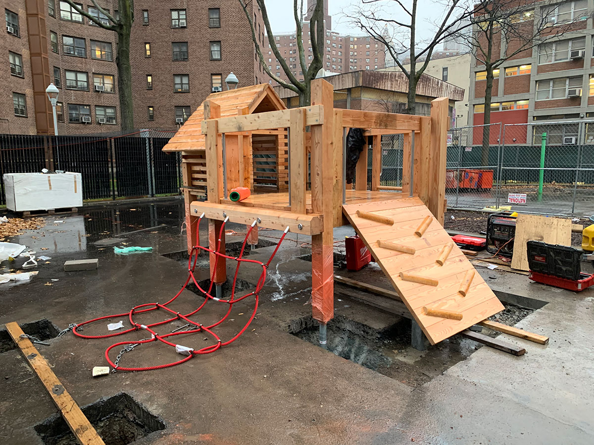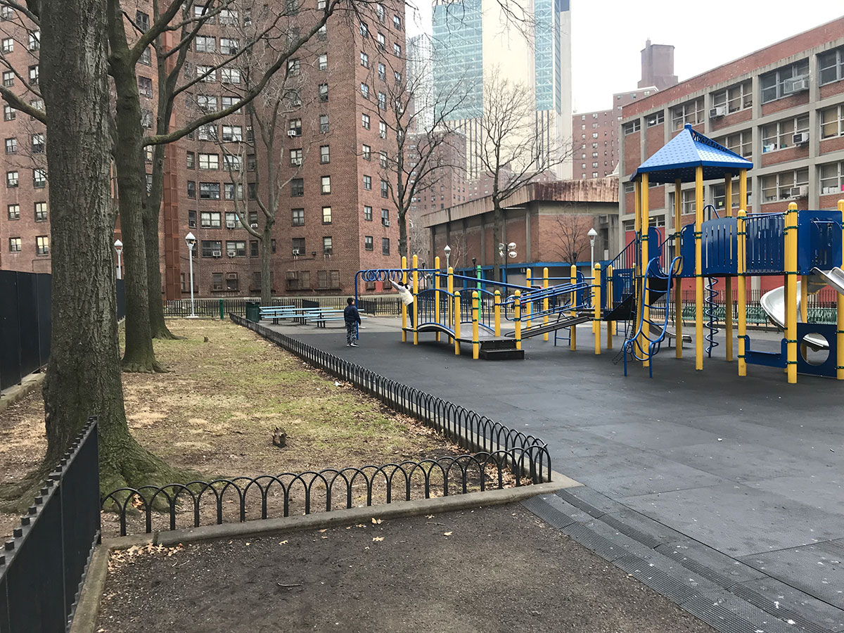 The Governor Alfred E. Smith Houses Playground project involved full reconstruction and resiliency upgrades as part of the Sandy Recovery Program. The work focused on replacing aging playground surfaces, installing new safety surfacing and play equipment, improving site accessibility, and restoring outdoor community space damaged by prior storm events. Construction required precise coordination within an occupied NYCHA development while maintaining pedestrian safety and protecting existing trees, utilities, and site infrastructure.