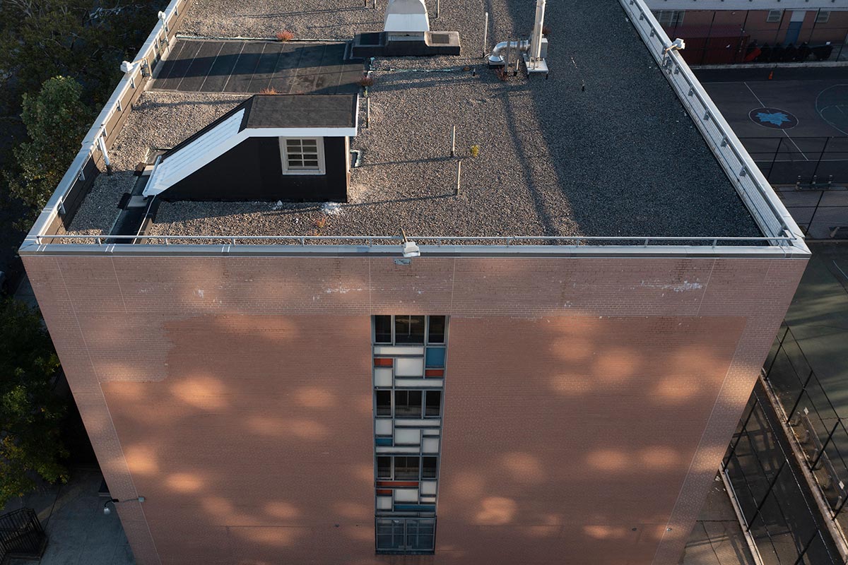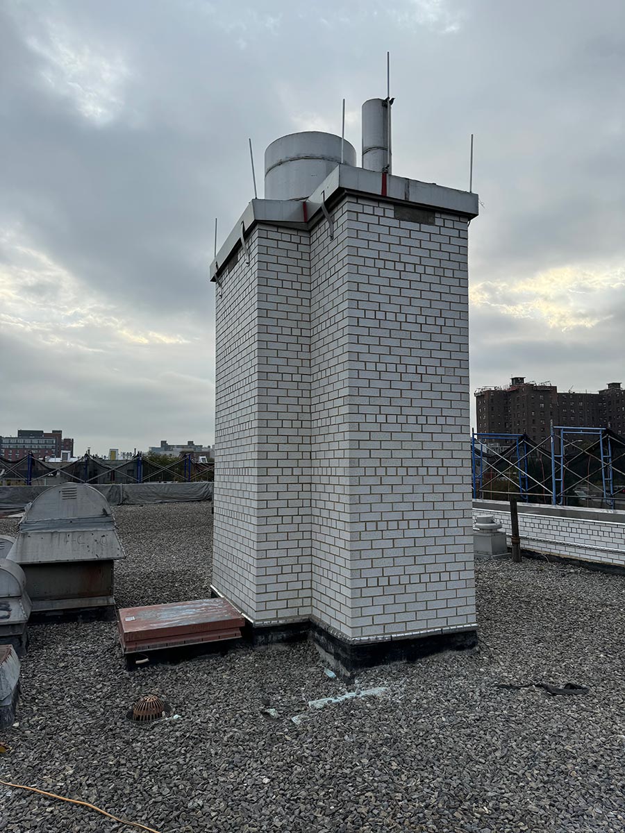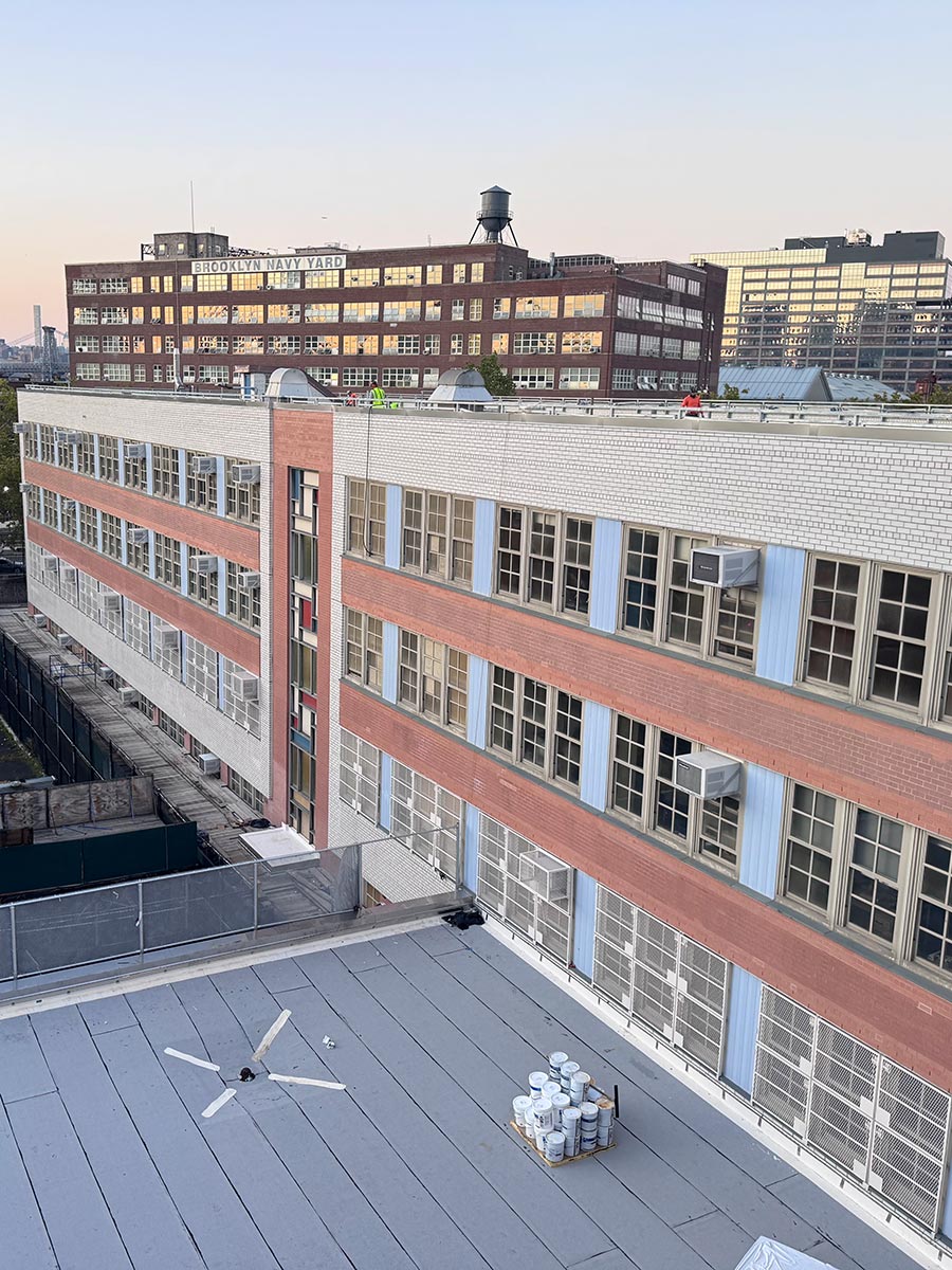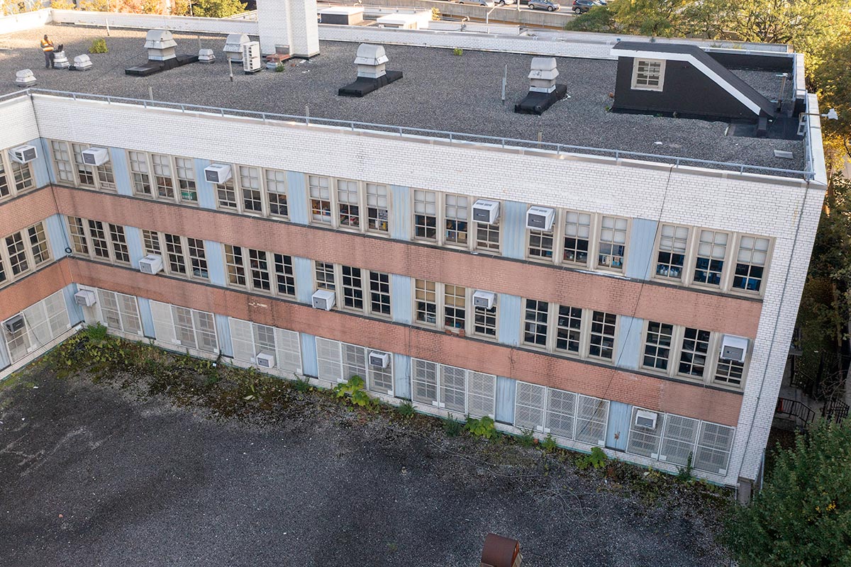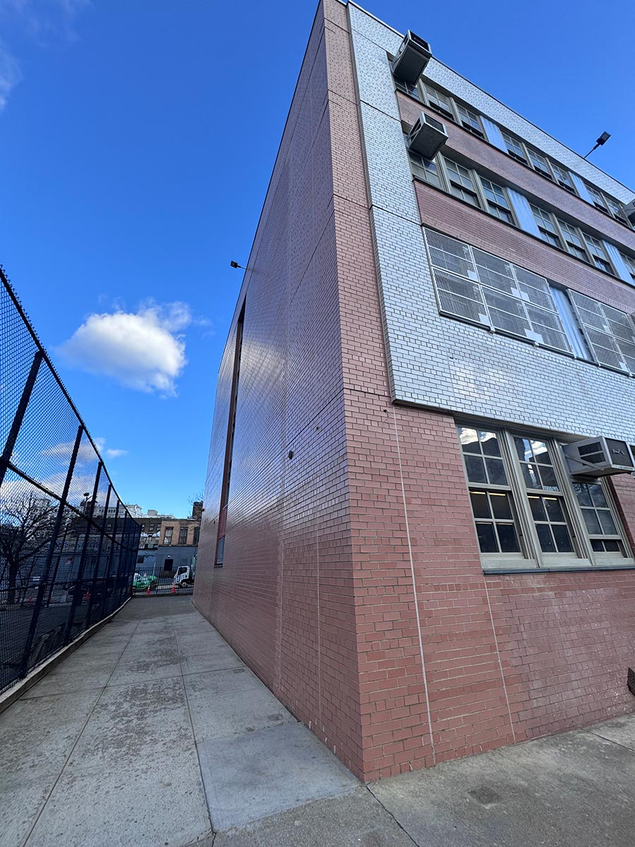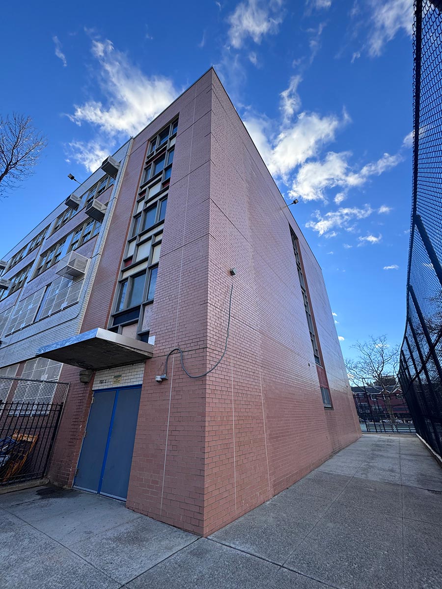 The project consists of rehabilitation of an existing school building, including roof replacement, parapet restoration, and exterior masonry repairs, along with upgrades to meet NYC Energy Conservation Code (NYCECC) requirements and improve overall building envelope performance.